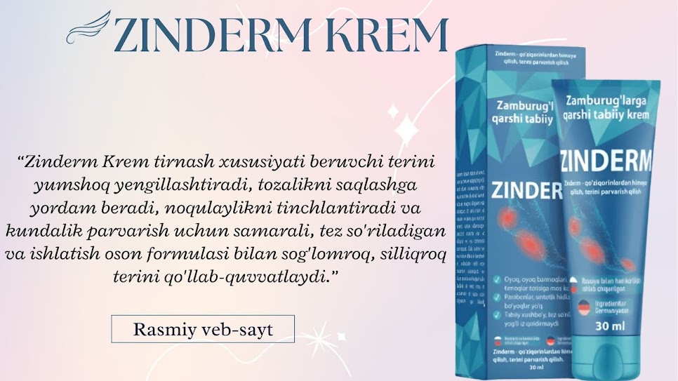 Zinderm Krem keng tarqalgan teri infeksiyalari uchun eng amaliy va samarali antifungal muolajalardan biri bo'lib qolmoqda. Qichish, qizarish va zamburug' dog'larini davolash qobiliyati uni O'zbekiston bo'ylab eng yaxshi tanlovga aylantiradi. Arzon narxi Zinderm narxi Uzbekistan, oson mavjudligi va Zinderm qo'llanilishi bo'yicha aniq ko'rsatmalari bilan krem ko'plab teri muammolariga ishonchli yengillik beradi.